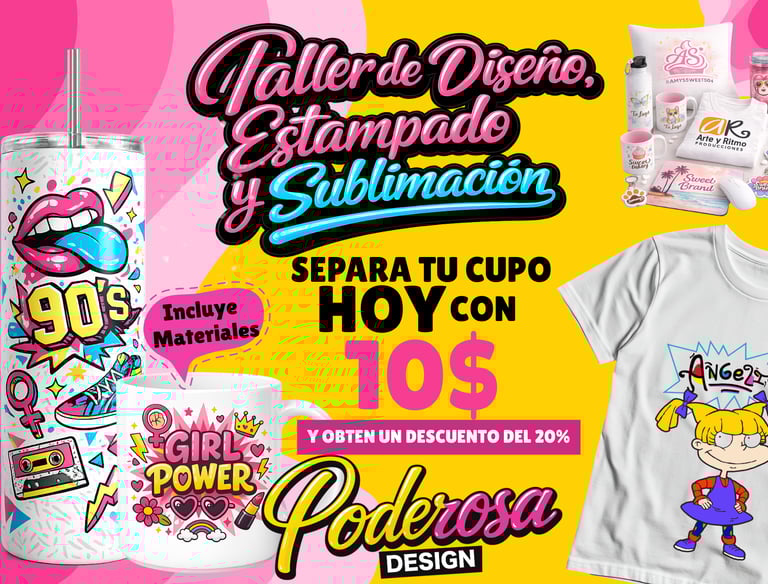 Clases presenciales y virtuales donde aprendes a diseñar y sublimar desde cero, de forma práctica y personalizada.